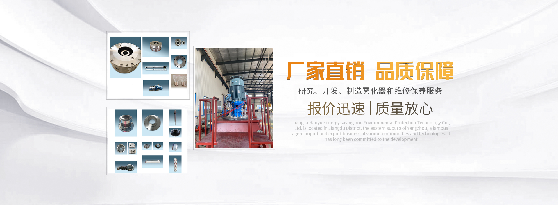 江蘇浩月節能環保科技有限公司位于充滿生機活力的濱江城市靖江,是集研究、開發、制造、銷售及自營和代理各類商品和技術的進出口業務為一體的科技型企業,長期致力于礦山機械、環保機械、冶金機械、研磨機系列、耐磨材料等產品的開發與生產銷售。我公司將長期秉承“質量第一、用戶至上、服務優良”的宗旨,為用戶提供優質的產品和優質的服務。我司從2014年開始對進口霧化器的國產化進行研發攻關,通過霧化器在不同工況條件下的連續運行,目前已成功開發了HY100、HY160、HY224、HY350、HY360、HY800、HY1000多種系列霧···